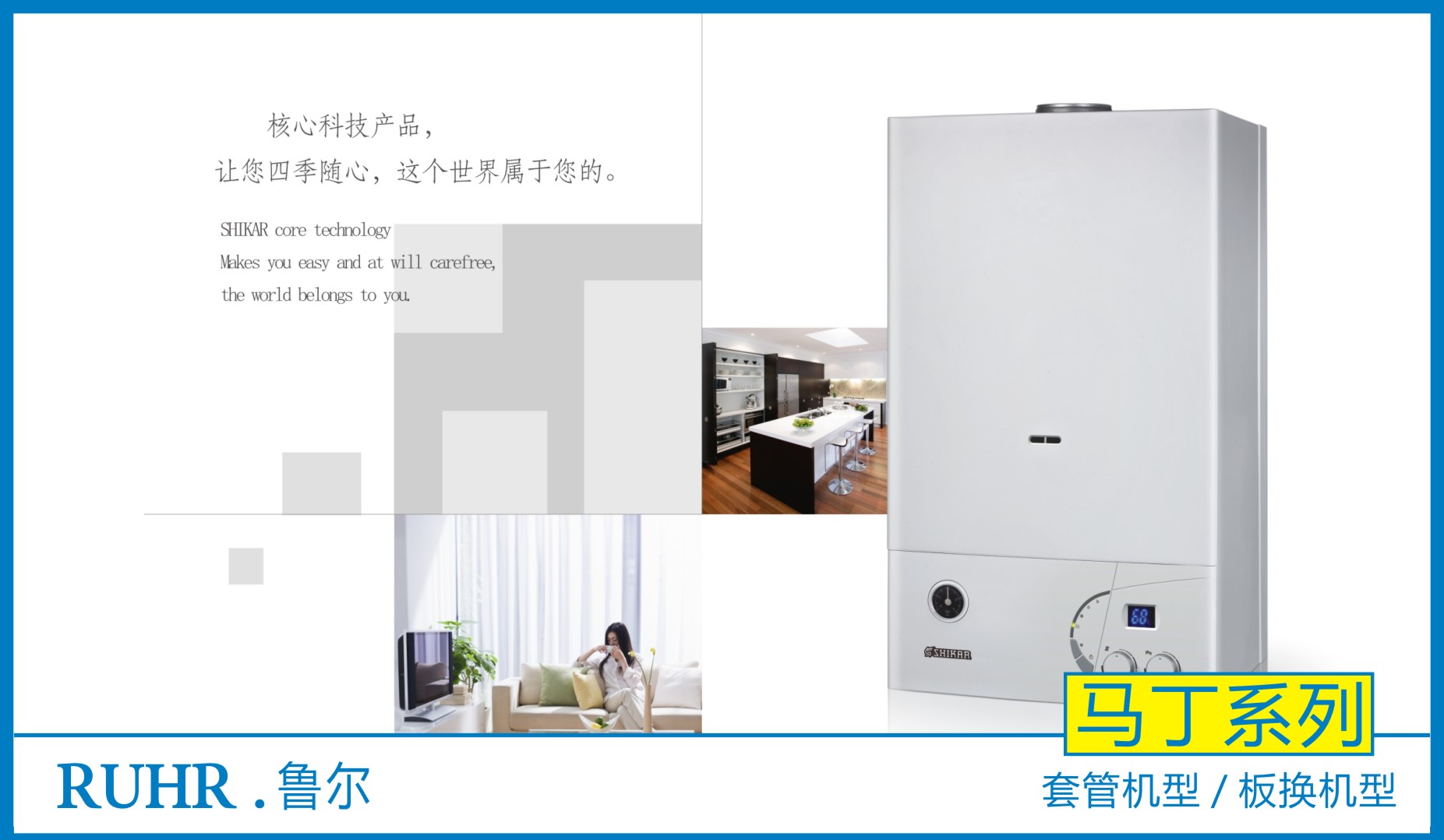 鲁尔燃气壁挂锅炉采用意大利20水路旁通阀,保证供暖系统更安全;结构性防水垢设计特别适用于国内浑浊/硬质水质。